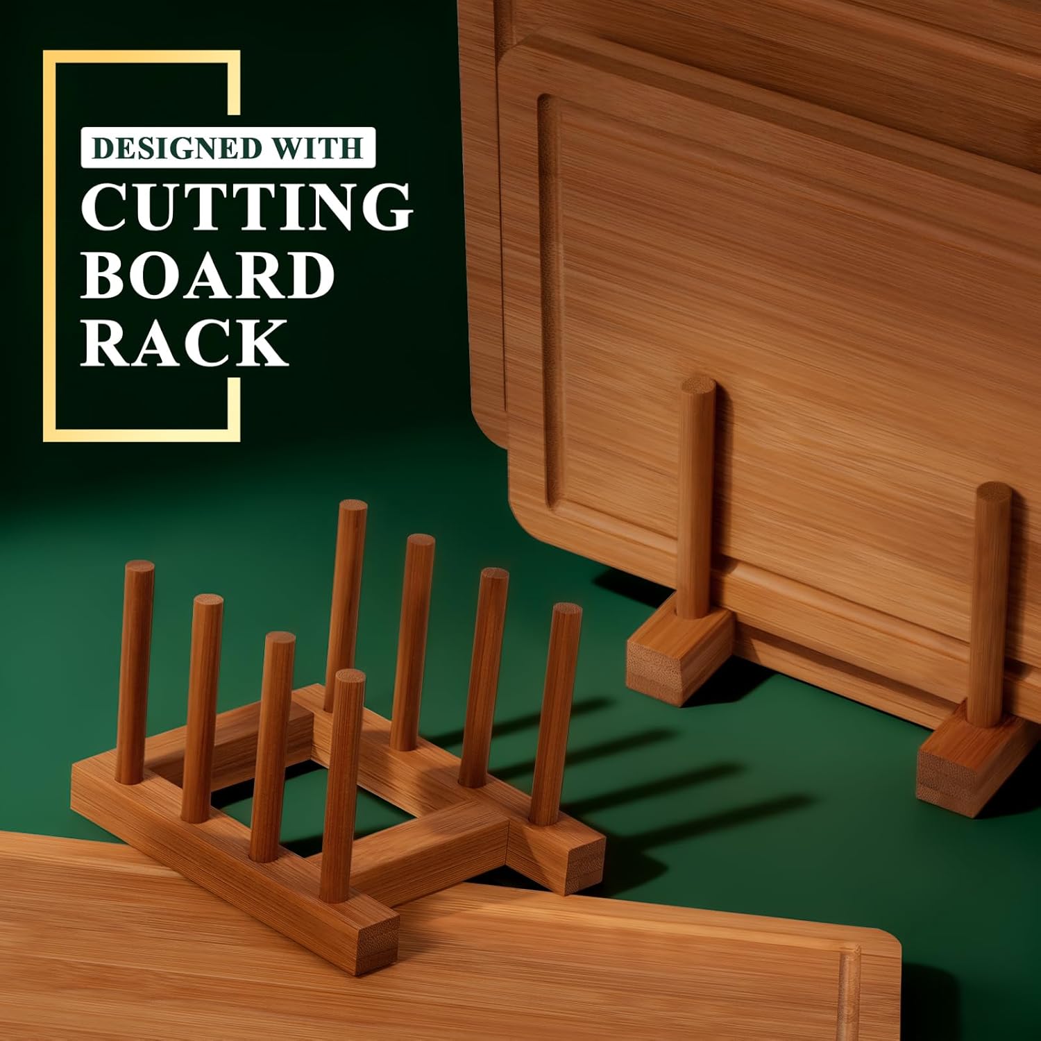 This cutting board set includes three different sizes: large, medium, and small, ensuring you have the right board for any task, whether you're chopping vegetables, slicing meats, or preparing a charcuterie platter. The smooth surface of the bamboo is knife-friendly, helping to maintain the sharpness of your blades without leaving deep cuts or scratches on the board.
