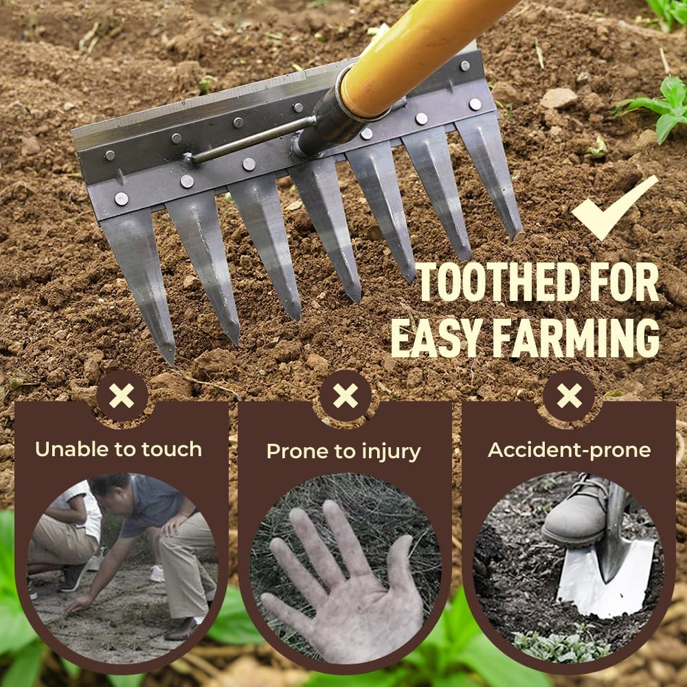 Product FeaturesOptimized tooth spacing improves soil penetration and weed extractionReinforced structure enhances stability during heavy-duty tasksCompact tool head design allows precise work in tight garden areasCompatible with extended handles for upright and comfortable useProduct SpecificationsProduct Name: Garden Weeding RakeMaterial: High carbon manganese steelTeeth Options: 3 5 7 15 teethColor: Metallic silverWeight: Approx. 300–600 g (0.66–1.32 lb) depending on modelHandle: Detachable, handle not includedWarm TipsHandle is not included and must be purchased separately. Choose the appropriate tooth size based on your gardening needs.
