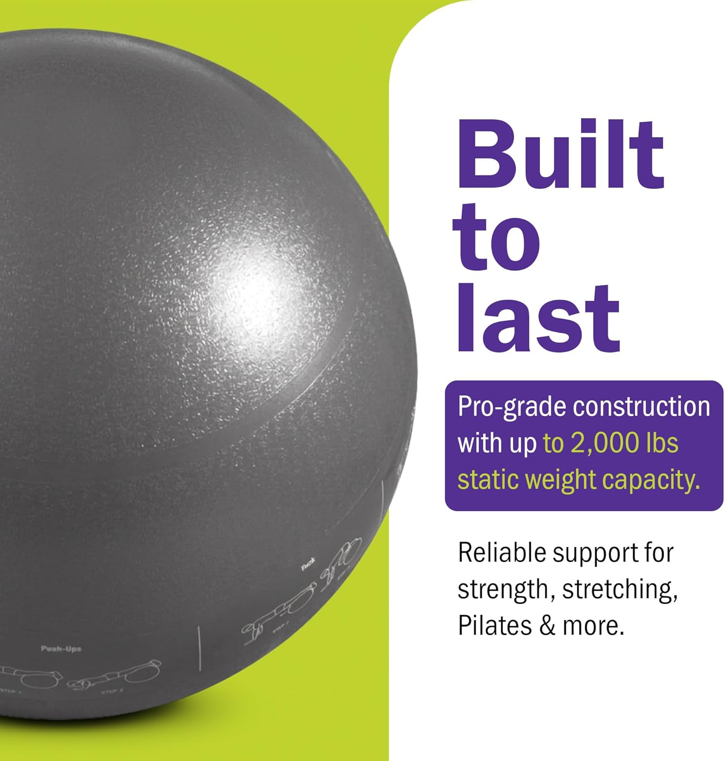 Product Description The GoFit Professional Grade Stability Ball is a round, unstable surface, so you not only train the primary muscle groups but also the smaller stabilizing muscles as well. Amazon.com This commercial-grade professional exercise ball was designed with advanced technology so you can work out with confidence. The superior GoFit Professional Stability Ball features super-thick walls constructed to perform with maximum durability and designed for commercial fitness use. Follow the professionally-developed exercises in the included Core Performance instructional DVD of Brook Benton to significantly improve your core stability, balance, and strength. GoFit's Exercise Balls are scientifically weight-tested by a professional, independent lab to ascertain weight limits at full air capacity. Through this process we determine durability levels to help you choose the best Exercise Ball for your specific level of use. The GoFit Professional Stability Ball is weight-rated up to 2000 pounds of static weight capacity. This Exercise Ball is ideal for commercial use as well as a home fitness program. Join Mark Verstegen, trainer of the top champions in Professional Sports, founder of the Athletes' Performance Institute and author of the new break through book Core Performance Essentials. Mark will guide you through his scientifically proven exercises that will increase your balance, strength, and functionality, to help you feel better, reduce pain, and have more energy so you can live your most active lifestyle. What's in the Box?65 centimeter inflatable Professional Stability Ball DVD by Brook Benton Exercise Booklet Recommended for people who are 5 feet, 6 inches to 6 feet tall